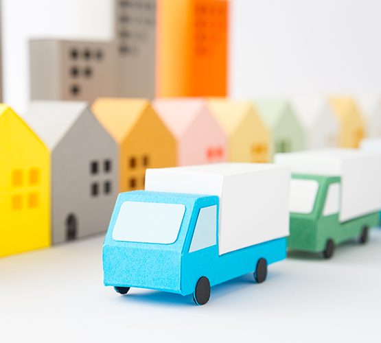 出荷準備のできた商品を運搬する作業が輸送や配送です。運搬効率化のために一度物流センターなどに運ばれてから他社の物と一緒に共同配送するケースも珍しくありません。こうした拠点に運ぶまでを「輸送」、そこから最終目的地までに運ぶ二次運搬を「配送」と呼ぶのが一般的です。
